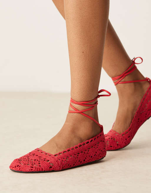 ASOS DESIGN - Larissa - Ballerines en maille crochetée avec lien à nouer au niveau de la cheville - Rouge