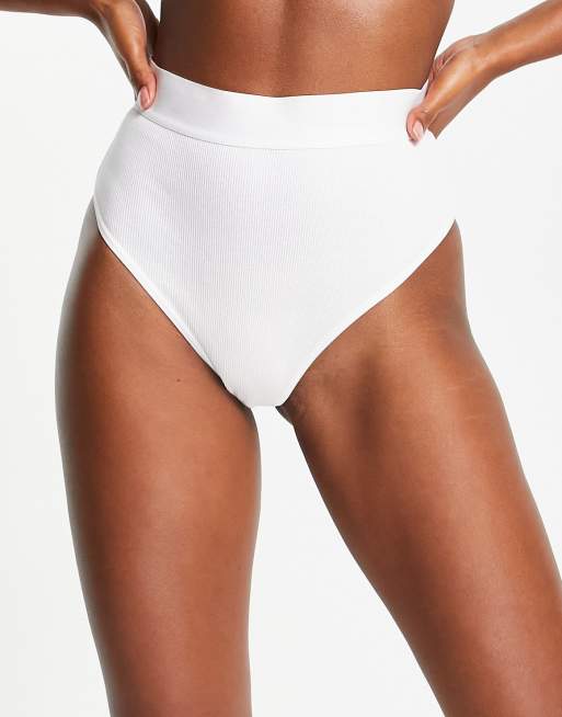 ASOS DESIGN - Leanne - Culotte taille haute en coton côtelé - Blanc