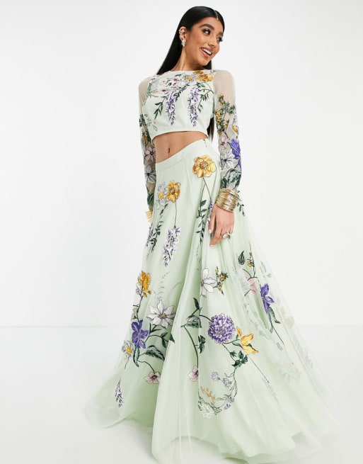 ASOS DESIGN - Lehenga - Ensemble brodé - Menthe