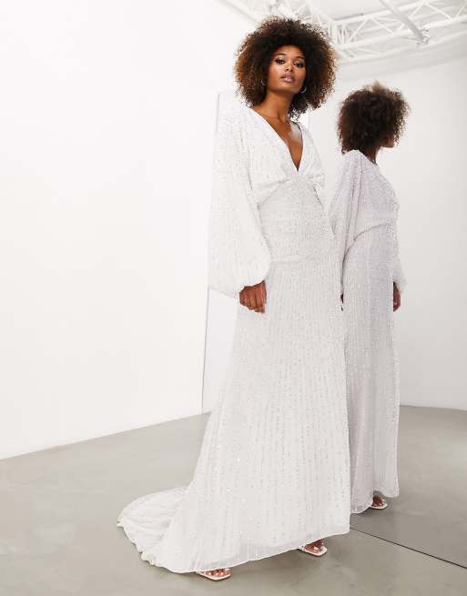 ASOS DESIGN - Lennox - Robe de mariée à sequins avec manches ballon et traîne - Ivoire