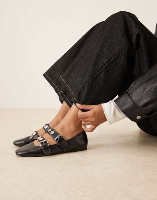 ASOS DESIGN - Liesel - Ballerines style babies à double bride cloutée - Noir