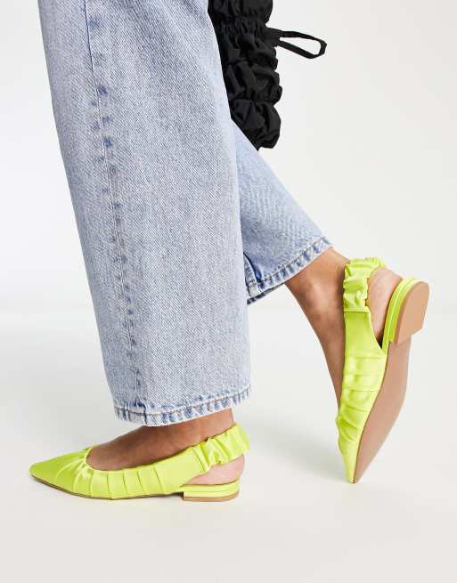 ASOS DESIGN - Limelight - Ballerines froncées en satin à bride arrière - Citron vert