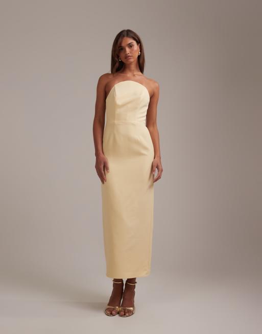 ASOS DESIGN - L'invitée - Robe bandeau structurée en crépon avec encolure haute incurvée - Citron