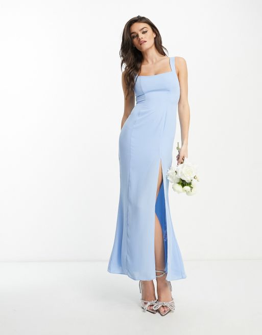 ASOS DESIGN L'invitée - Robe longue avec encolure en cœur et boutons dans le dos - Bleu clair