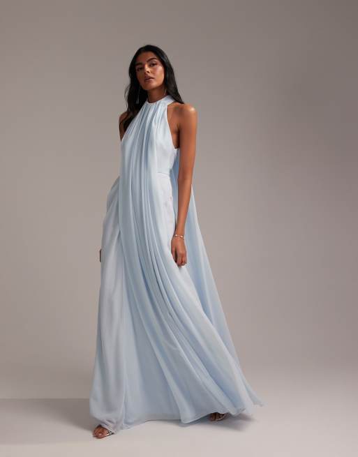 ASOS DESIGN - L'invitée - Robe longue drapée style grec avec encolure licou - Bleu clair