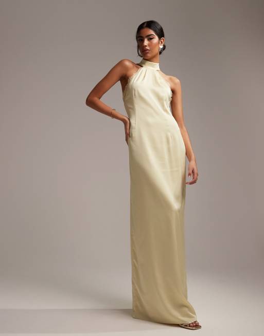 ASOS DESIGN - L'invitée - Robe longue droite à encolure licou - Jaune pastel