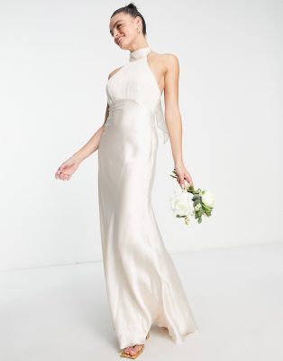 ASOS DESIGN - L'invitée - Robe longue plissée avec dos nu et jupe en satin doux - Crème