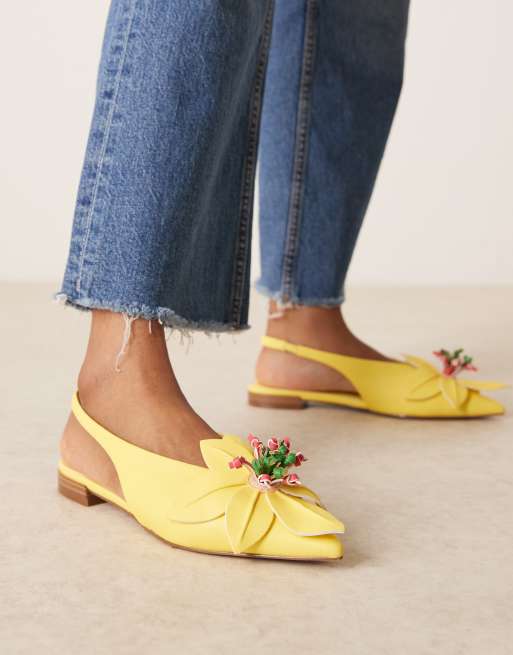 ASOS DESIGN - Livia - Ballerines à bout pointu, fleur et bride arrière - Jaune vif