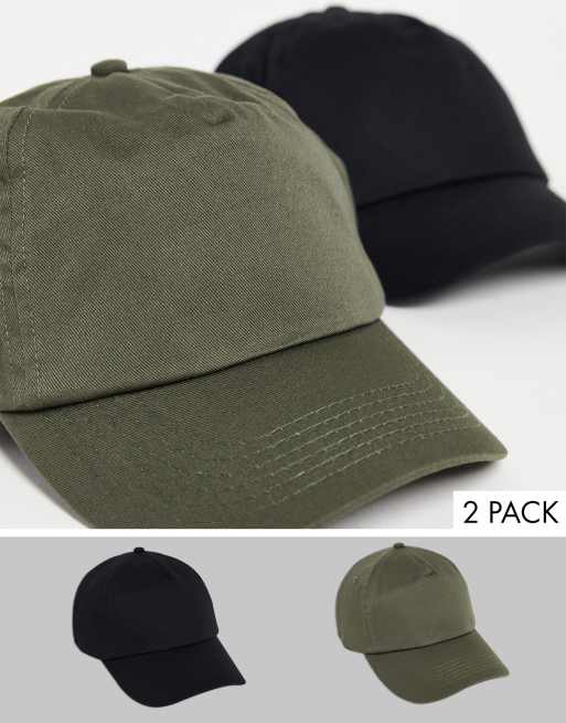 ASOS DESIGN - Lot de 2 casquettes de baseball - Noir et Kaki - ÉCONOMIE