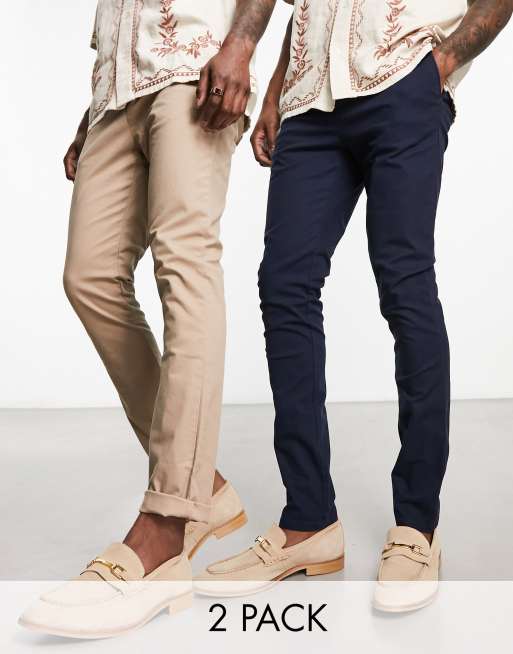 ASOS DESIGN - Lot de 2 pantalons chino ajustés - Bleu marine et taupe - ÉCONOMIE