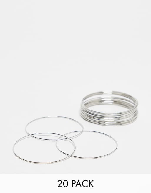 ASOS DESIGN - Lot de 20 bracelets joncs - Argenté