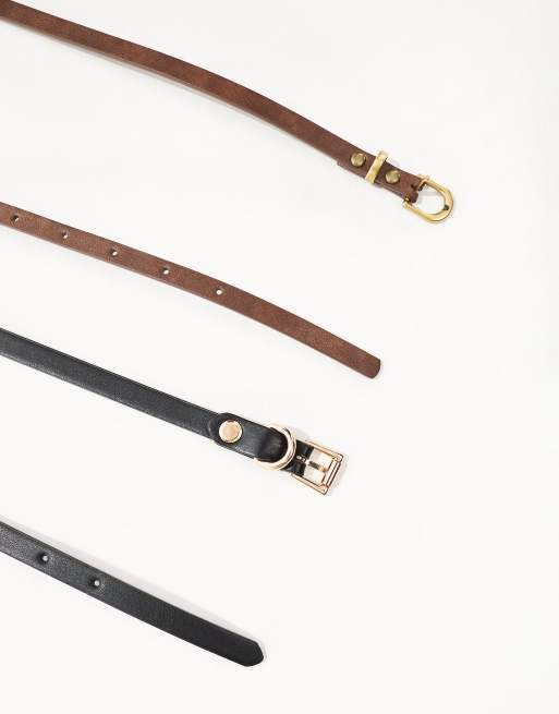 ASOS DESIGN - Lot de 2 ceintures fines taille et hanches - Noir et fauve