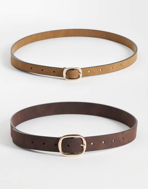 ASOS DESIGN - Lot de 2 ceintures pour taille et hanches - Fauve et chocolat