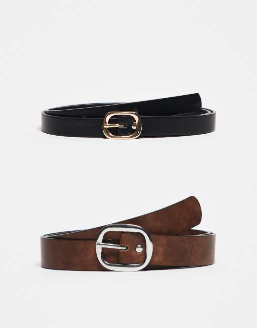 ASOS DESIGN - Lot de 2 ceintures taille et hanches design fin et large - Noir et chocolat