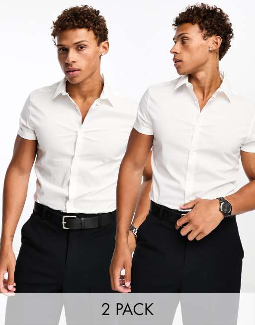 ASOS DESIGN - Lot de 2 chemises de travail ajustées stretch - Blanc