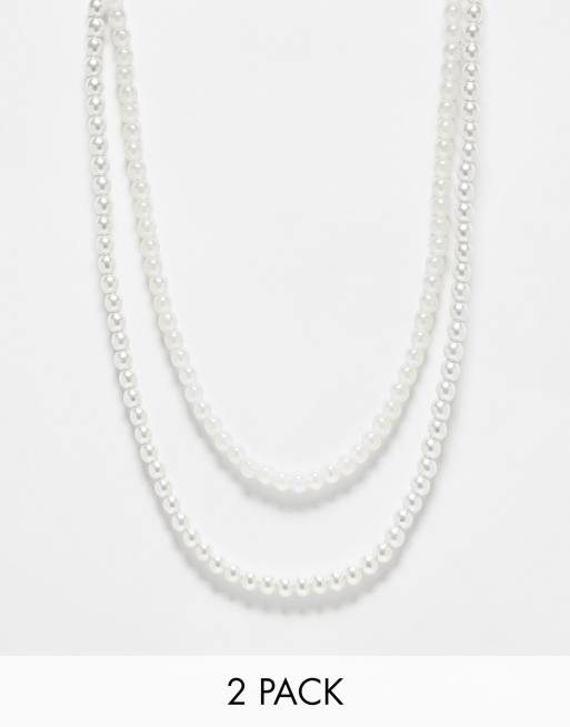 ASOS DESIGN - Lot de 2 colliers avec perles fantaisie 6 mm et perles yeux de chat
