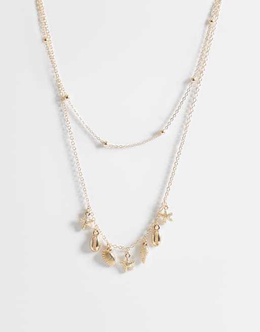 ASOS DESIGN - Lot de 2 colliers fins à petites breloques océan - Doré