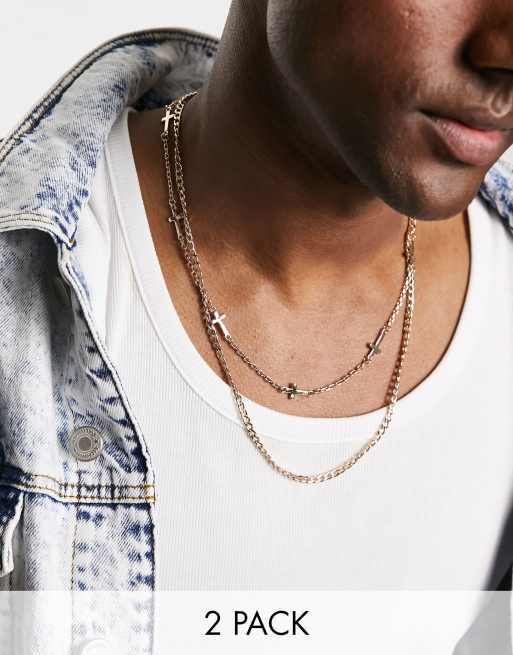 ASOS DESIGN - Lot de 2 colliers multi-rangs avec croix - Doré