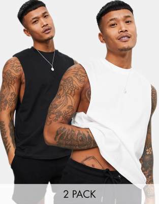 ASOS DESIGN - Lot de 2 débardeurs décontractés à emmanchures larges - Noir et blanc