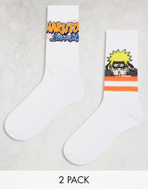 ASOS DESIGN - Lot de 2 paires de chaussettes à imprimé Naruto - Blanc
