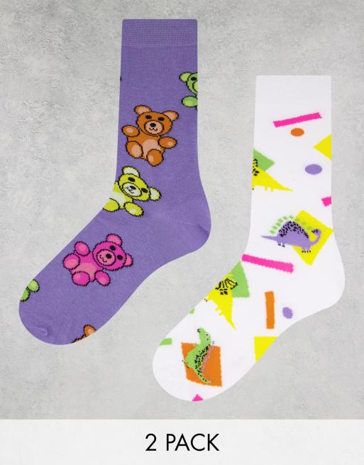 ASOS DESIGN - Lot de 2 paires de chaussettes rétro à motif ours en peluche