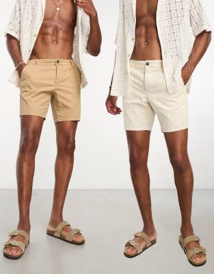 ASOS DESIGN - Lot de 2 shorts chino skinny mi-longs - Taupe et fauve