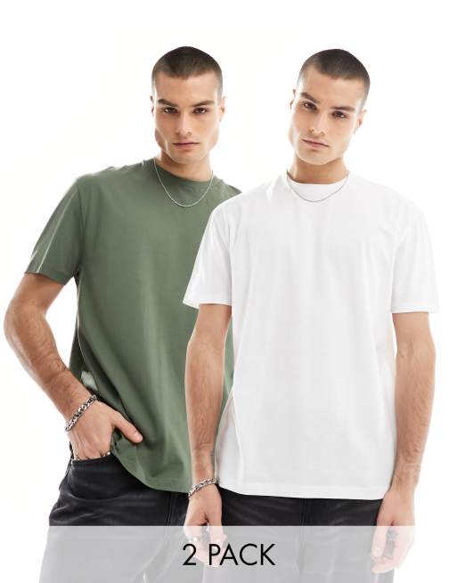 ASOS DESIGN - Lot de 2 t-shirts décontractés - Blanc et kaki