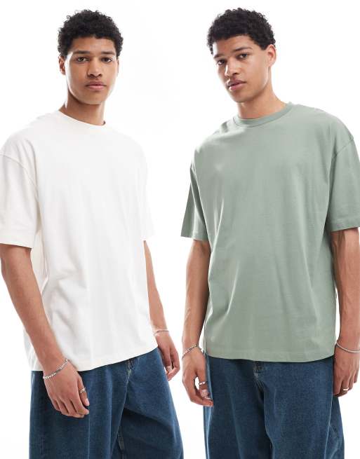 ASOS DESIGN - Lot de 2 t-shirts oversize basiques - Crème et vert