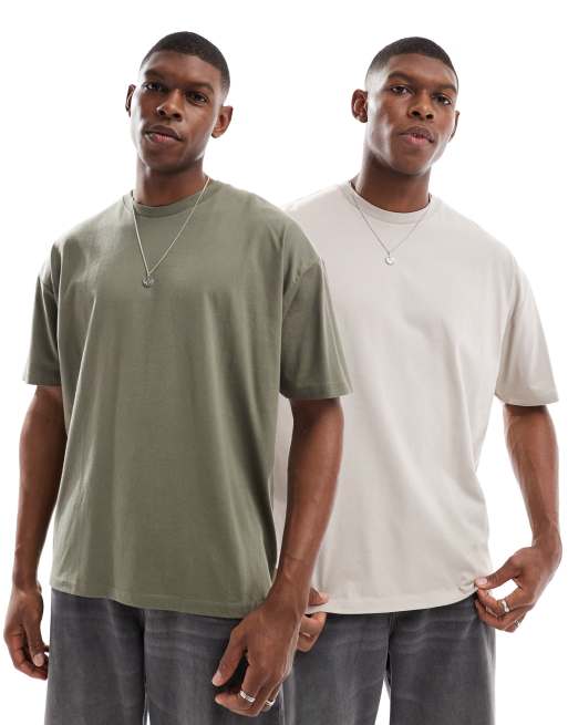 ASOS DESIGN - Lot de 2 t-shirts oversize basiques - Taupe et kaki