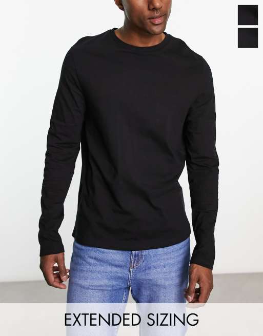 ASOS DESIGN - Lot de 2 t-shirts ras de cou à manches longues - Noir