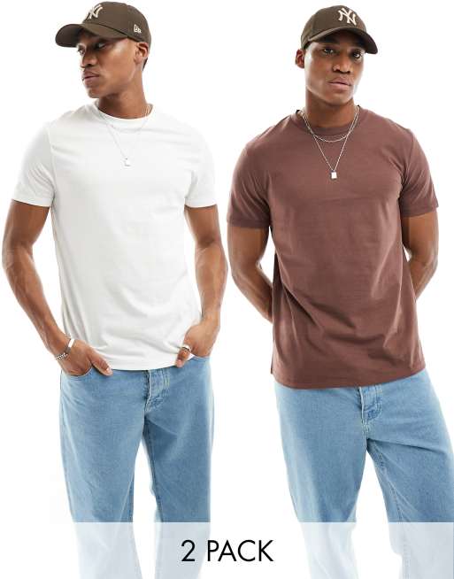 ASOS DESIGN - Lot de 2 t-shirts ras de cou - Marron et blanc