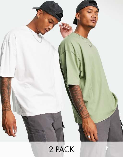 ASOS DESIGN - Lot de 2 t-shirts ras de cou oversize - Blanc et kaki