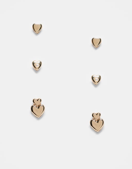 ASOS DESIGN - Lot de 3 bagues avec cœur bombé - Doré