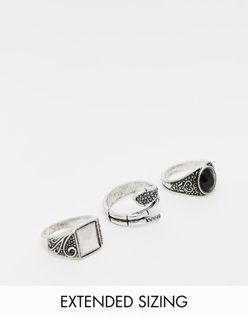 ASOS DESIGN - Lot de 3 bagues avec modèle enveloppant et pierre semi-précieuse - Argenté poli