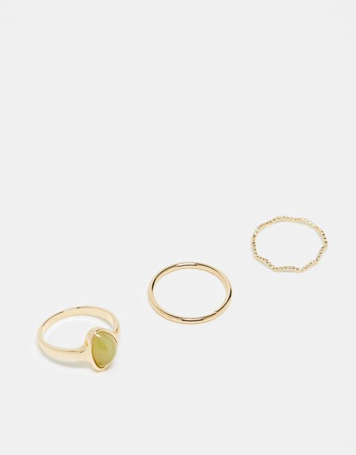ASOS DESIGN - Lot de 3 bagues forme ondoyante avec pierre verte - Doré