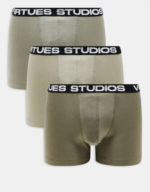 ASOS DESIGN - Lot de 3 boxers à taille imprimée - Kaki