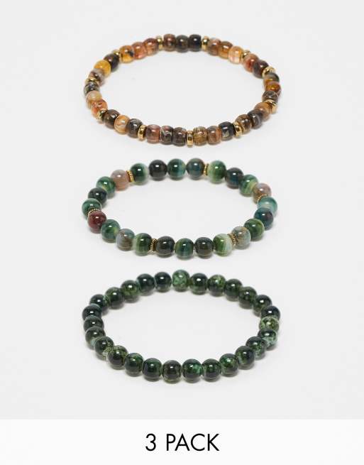 ASOS DESIGN - Lot de 3 bracelets avec perles et pierres semi-précieuses variées - Vert doré