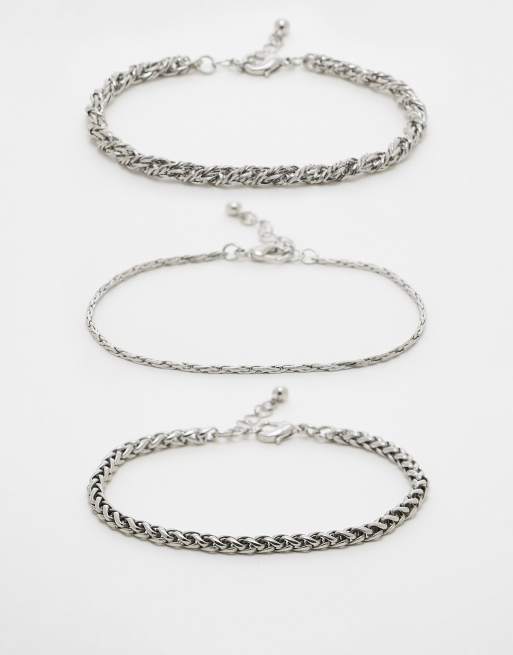 ASOS DESIGN - Lot de 3 bracelets chaîne - Argenté