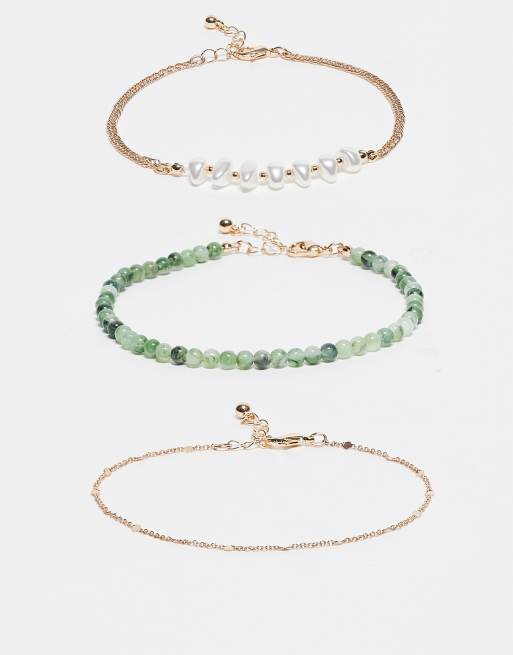 ASOS DESIGN - Lot de 3 bracelets de cheville avec perles et pierres fantaisie - Doré