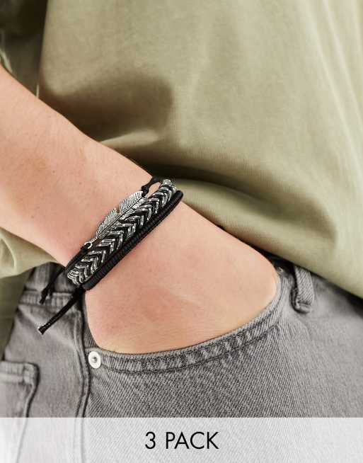 ASOS DESIGN - Lot de 3 bracelets en cordelette avec plume - Noir