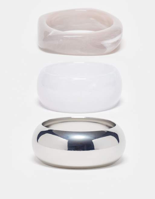 ASOS DESIGN - Lot de 3 bracelets joncs en résine et métal - Argenté