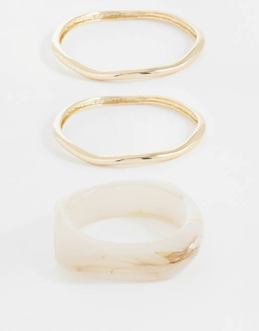ASOS DESIGN - Lot de 3 bracelets joncs en résine naturelle - Doré