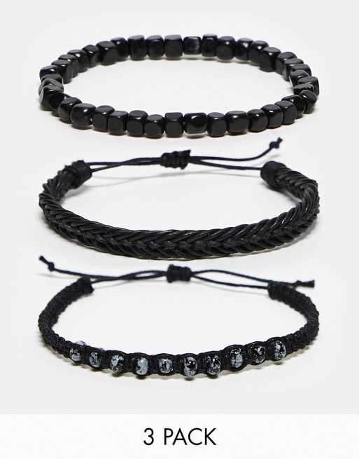 ASOS DESIGN - Lot de 3 bracelets style festival en perles fantaisie et cordon - Noir et blanc