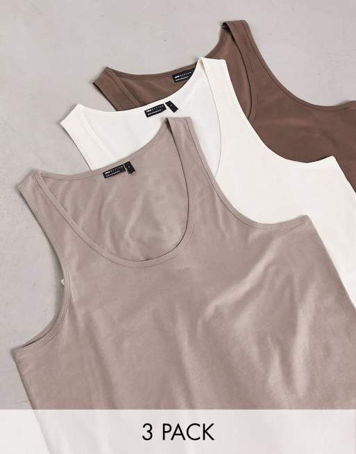 ASOS DESIGN - Lot de 3 débardeurs à encolure dégagée - Écru, beige et marron