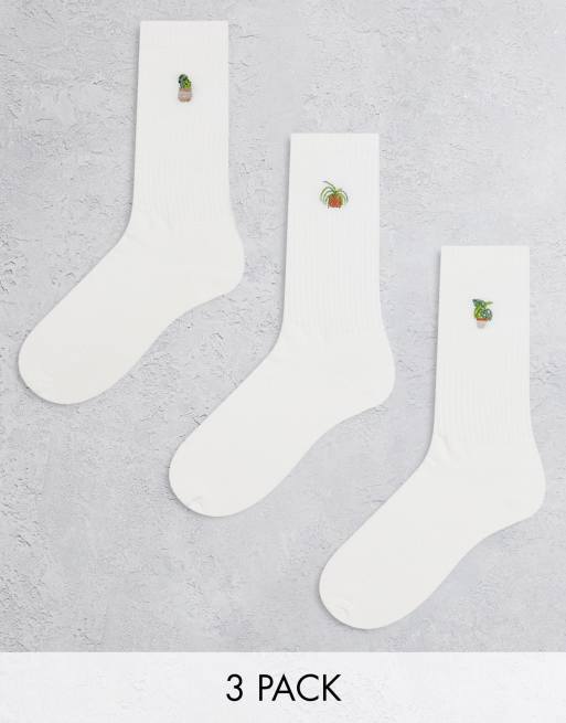 ASOS DESIGN - Lot de 3 paires de chaussettes à broderie plante - Blanc