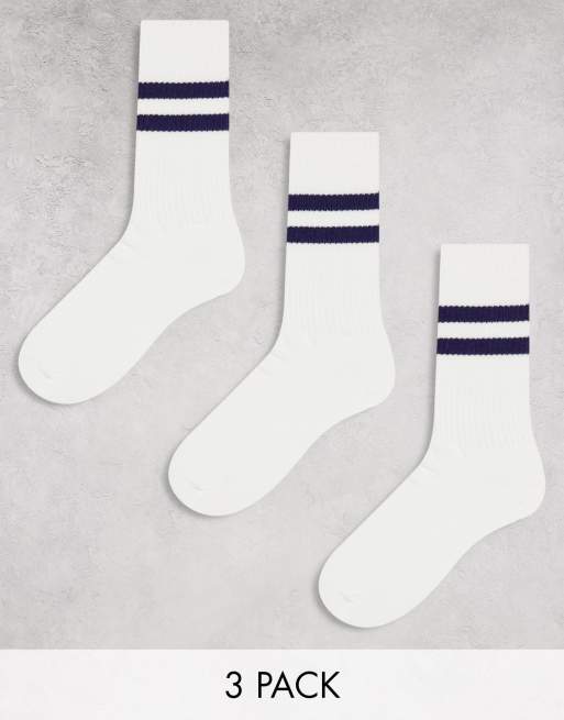 ASOS DESIGN - Lot de 3 paires de chaussettes de sport à rayures - Bleu marine