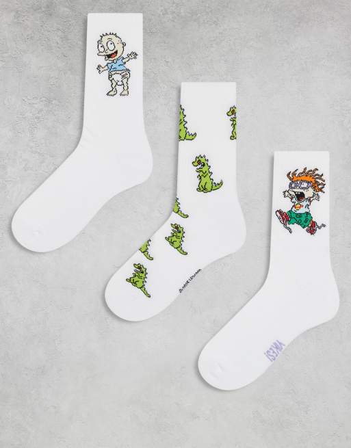 ASOS DESIGN - Lot de 3 paires de chaussettes motif Les Razmoket - Blanc