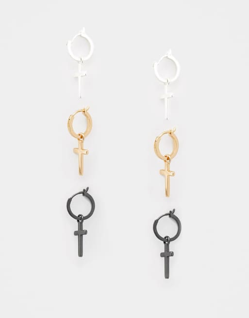 ASOS DESIGN - Lot de 3 paires de petites créoles - Argenté/doré/noir