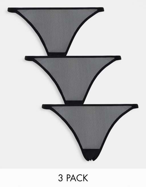 ASOS DESIGN - Lot de 3 strings coupe tanga en tulle - Noir