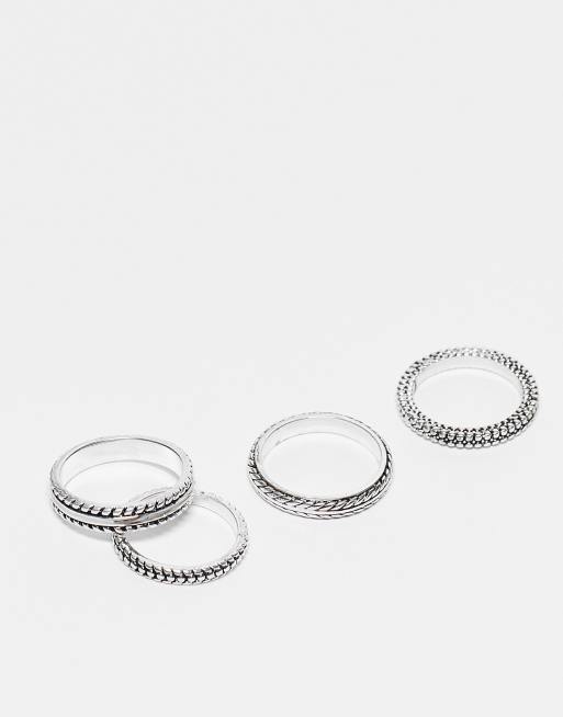 ASOS DESIGN - Lot de 4 bagues fines avec détails en relief - Argenté